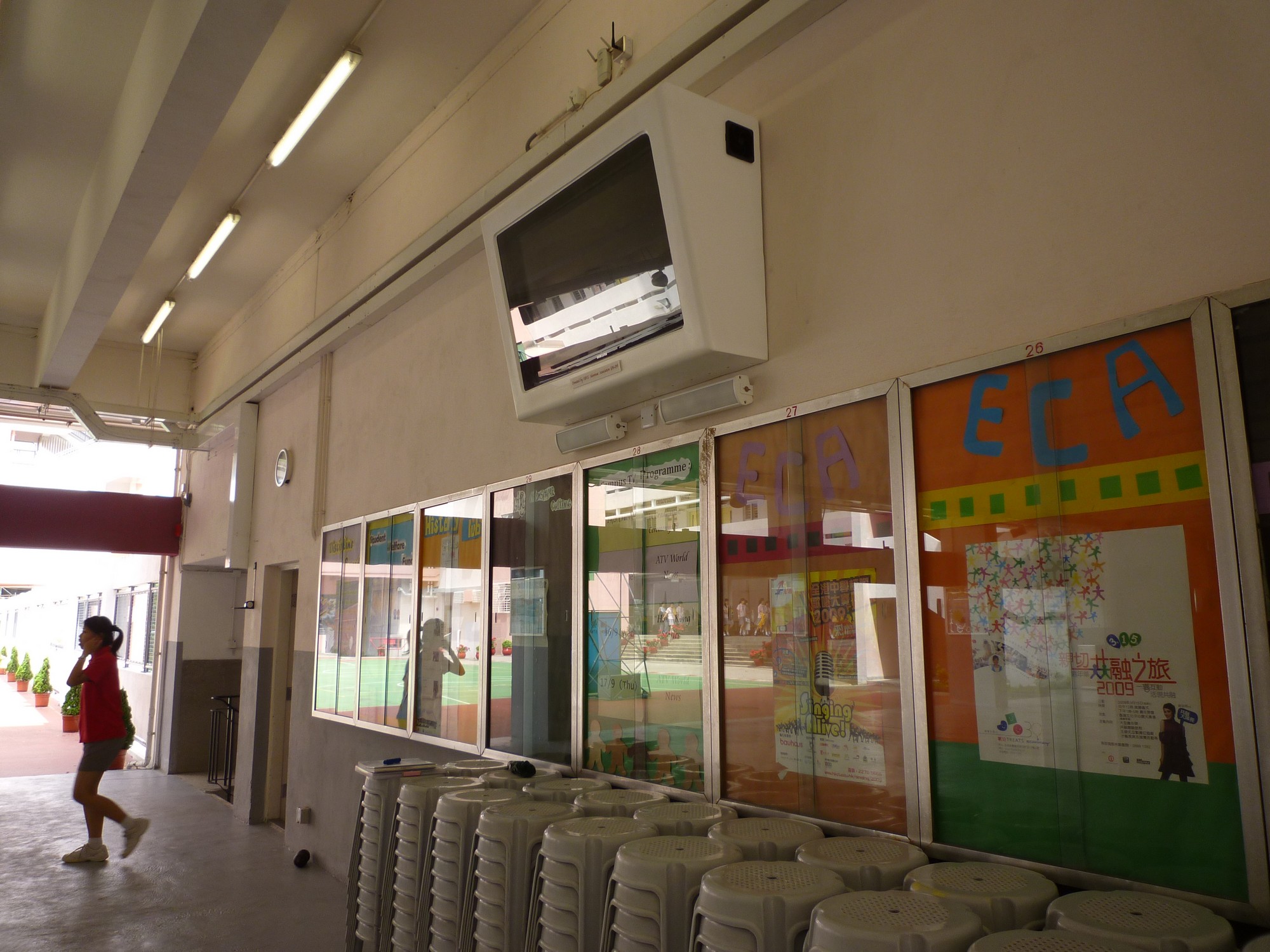 As mentioned in last newsletter, we have donated a Plasma TV to the school during the summer. It is installed in the cover playground, near the P.E. storeroom. Since the start of the school term, students can watch news and various subjects-related documentaries during lunch time.